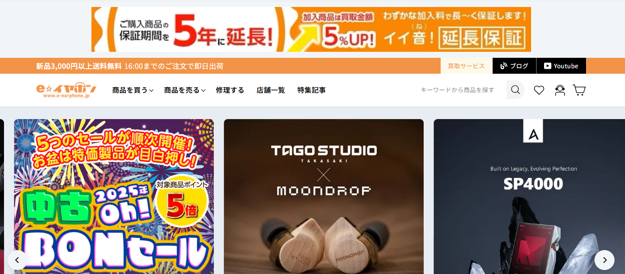 「e☆イヤホン」は、イヤホン・ヘッドホンをはじめとするポータブルオーディオ機器の販売・買取を専門に行う老舗店です。